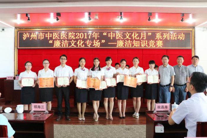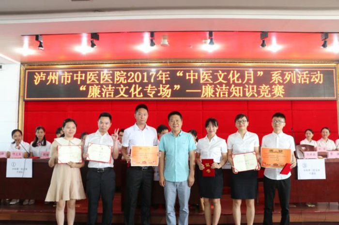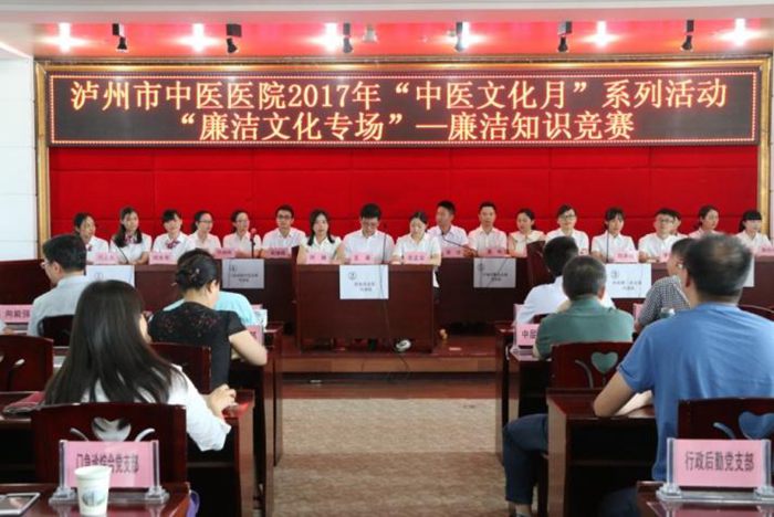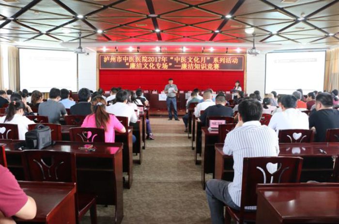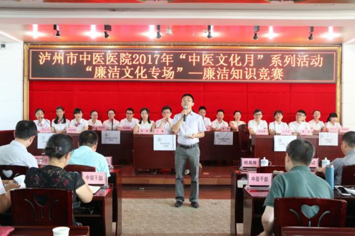 為進(jìn)一步加強(qiáng)醫(yī)院黨風(fēng)廉潔建設(shè)和醫(yī)德醫(yī)風(fēng)建設(shè),2017年5月27日下午,瀘州市中醫(yī)醫(yī)院在門診11樓學(xué)術(shù)廳開展 “中醫(yī)文化月”系列活動(dòng):“廉潔文化專場”——廉潔知識(shí)競賽,市衛(wèi)生計(jì)生委監(jiān)察室主任稅昌海到場指導(dǎo)。醫(yī)院全體中層以上領(lǐng)導(dǎo)干部、全體黨員參加了此次活動(dòng)。