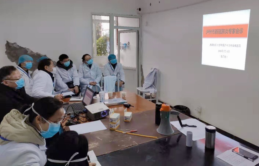 羅彥(右二)與市新冠肺炎醫(yī)療救治專家組一起討論診療方案