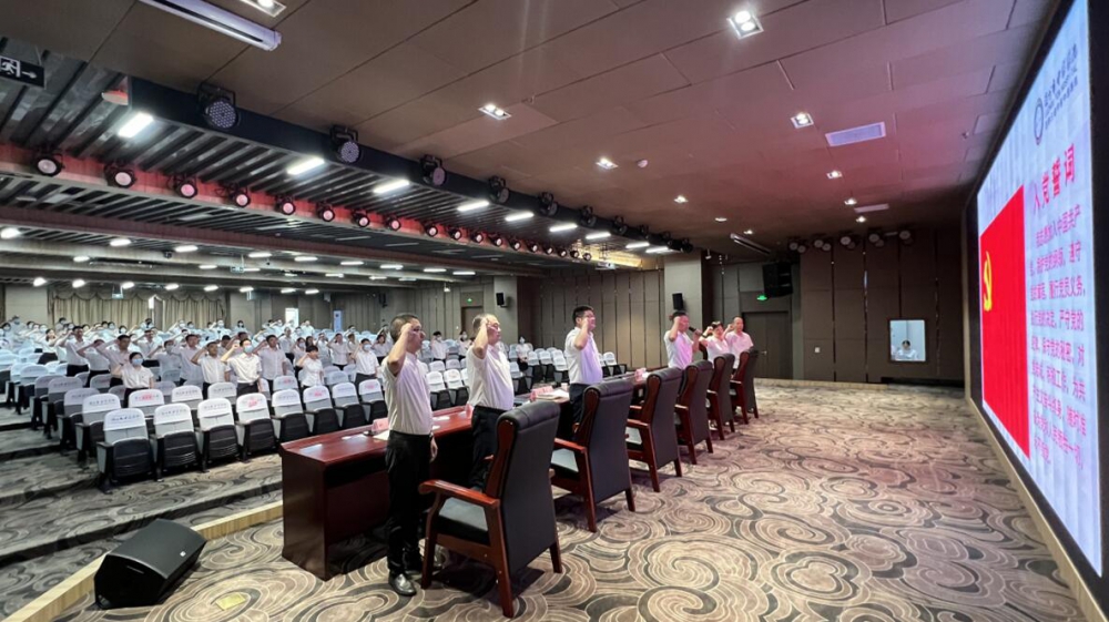 “我志愿加入中國共產(chǎn)黨,擁護黨的綱領……”在醫(yī)院黨委書記鄭海三的帶領下,全體與會黨員重溫了入黨誓詞。鏗鏘的誓言響徹會場,莊嚴地向黨的生日獻禮。