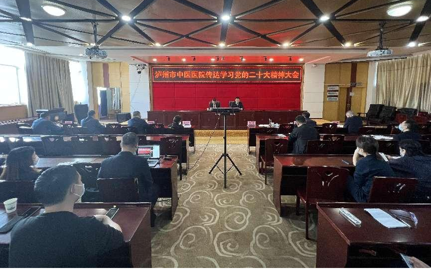 2022年11月2日下午,瀘州市中醫(yī)醫(yī)院召開專題會(huì)議,傳達(dá)學(xué)習(xí)黨的二十大精神,安排部署醫(yī)院宣傳貫徹黨的二十大精神工作。會(huì)議以視頻會(huì)議形式召開,主會(huì)場(chǎng)設(shè)在大山坪院區(qū)門診11樓學(xué)術(shù)報(bào)告廳,城南院區(qū)設(shè)立分會(huì)場(chǎng)。醫(yī)院領(lǐng)導(dǎo)班子成員、全院黨員干部參加會(huì)議。醫(yī)院黨委書記鄭海三領(lǐng)學(xué)黨的二十大報(bào)告精神以及傳達(dá)省、市學(xué)習(xí)黨的二十大精神大會(huì)精神,醫(yī)院黨委副書記、院長(zhǎng)金忠主持會(huì)議。