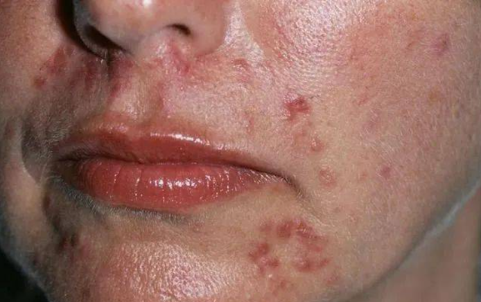 3、面部會長像痤瘡一樣的丘疹、膿皰