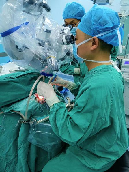 根據(jù)術(shù)前的規(guī)劃,謝勇主任通過(guò)使用神經(jīng)外科顯微鏡成功暴露出了小腦腫瘤組織,并與華西教授共同切除了緊貼著腦干和包繞顱底顱神經(jīng)的腫瘤組織。術(shù)后患者無(wú)神經(jīng)功能障礙,順利出院。