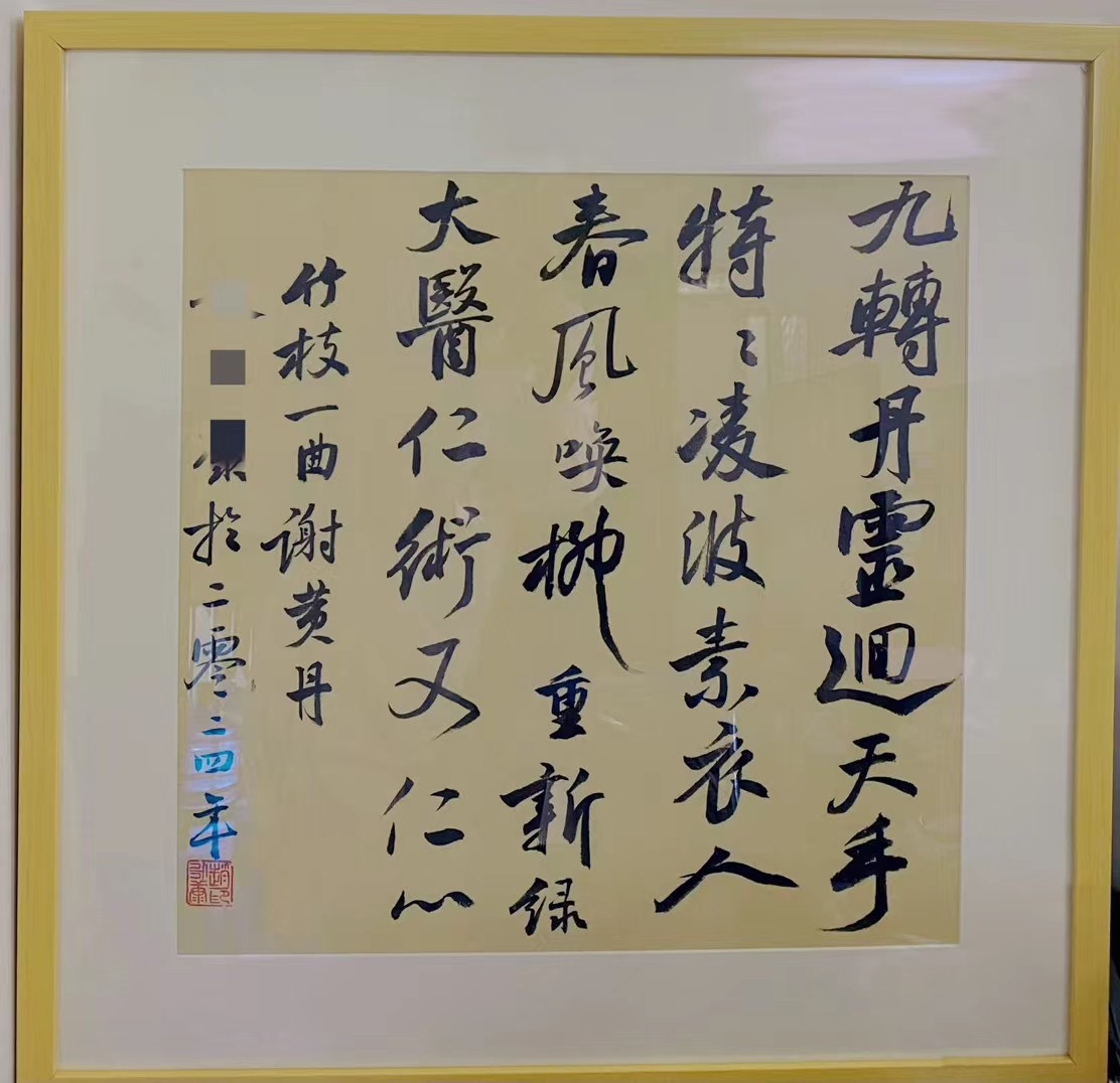 因此,他在康復(fù)出院后,再次聯(lián)系科室,向醫(yī)護(hù)人員贈(zèng)送他的墨寶,并現(xiàn)場(chǎng)吟誦這首詞曲。