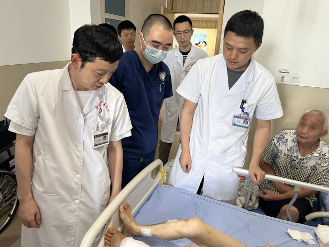 幾年前,一名61歲的女性患者因車禍致全身多處受傷,頭面部挫裂傷、顴骨骨折,左小腿脫套傷尤為嚴(yán)重,皮膚和軟組織大面積缺損,脛前肌腱大部分?jǐn)嗔?、缺損,左足背裂傷。在重點(diǎn)處理左小腿脫套傷及皮膚軟組織缺損時(shí),面對(duì)比巴掌大的一個(gè)“血窟窿”,我們采取“乾坤大挪移”的方式,從患者自身大腿上游離取下一塊帶著血管的皮膚軟組織,將其移植到缺損的左小腿創(chuàng)傷部位,通過顯微鏡下精細(xì)操作接活細(xì)微的血管,我與團(tuán)隊(duì)成員密切配合,手術(shù)最終取得了成功,手術(shù)后患者逐步恢復(fù)正常行走,令人欣慰。