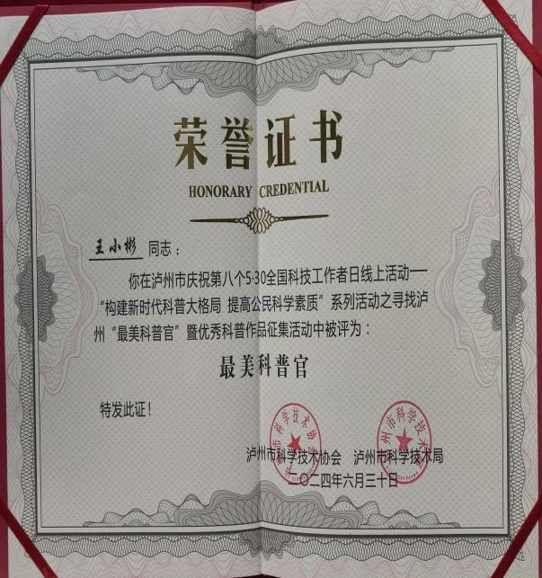 而在瀘州市科學(xué)技術(shù)協(xié)會、瀘州市科學(xué)技術(shù)局聯(lián)合舉辦的科普活動中,醫(yī)院急診科更是大放異彩。急診科主任王小彬和護士長韋漢櫻分別榮獲“瀘州市最美科普官”和“優(yōu)秀科普作品”稱號。這不僅是對他們個人的認(rèn)可,也是對醫(yī)院急診科在科普教育方面所做工作的肯定。