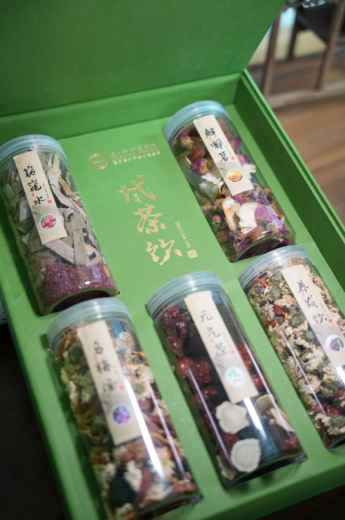 活動(dòng)現(xiàn)場(chǎng)設(shè)置了20個(gè)展臺(tái),邀請(qǐng)各中醫(yī)醫(yī)療機(jī)構(gòu)、中醫(yī)藥相關(guān)企業(yè)展覽展示四川中醫(yī)藥大健康產(chǎn)品,其中一個(gè)展臺(tái)的主人翁便是瀘州市中醫(yī)醫(yī)院。展臺(tái)上,藥膳、中藥代茶飲、香囊、頸椎枕等引人注目。僅中藥代茶飲就有六種:清咽利喉飲,烏梅湯、窈窕水、元?dú)獠?、解憂茗、舒目香,根據(jù)所制中藥材不同,茶飲具有減脂、明目等不同作用。