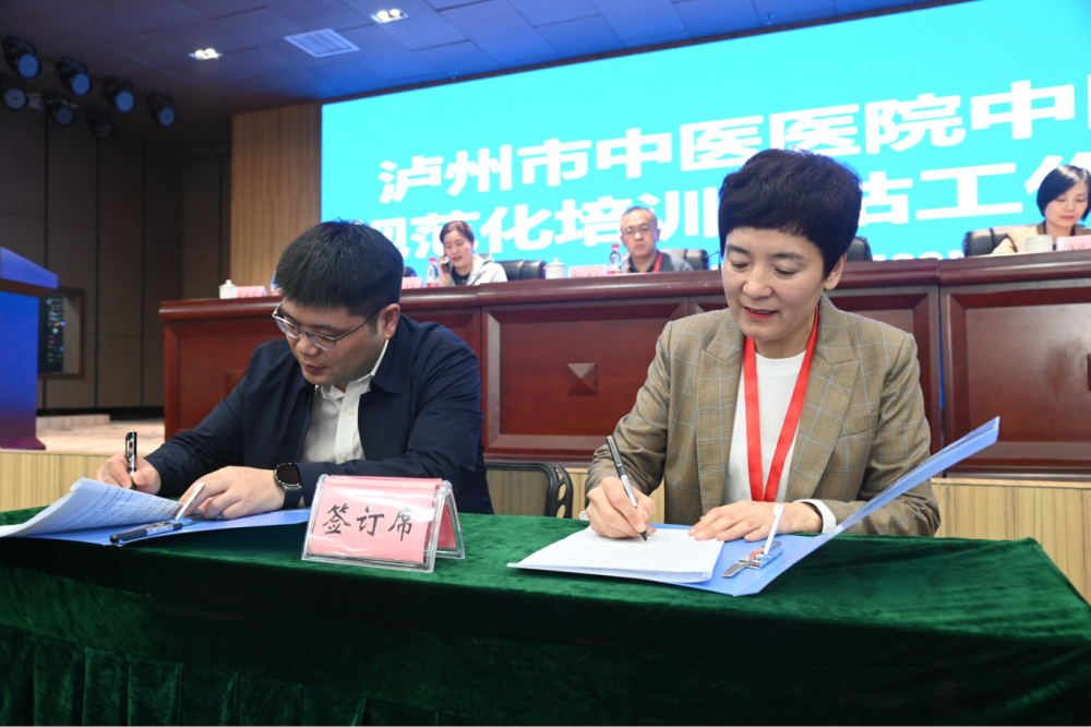 代表醫(yī)院與評估組組長一起簽署培訓基地評估反饋意見書)