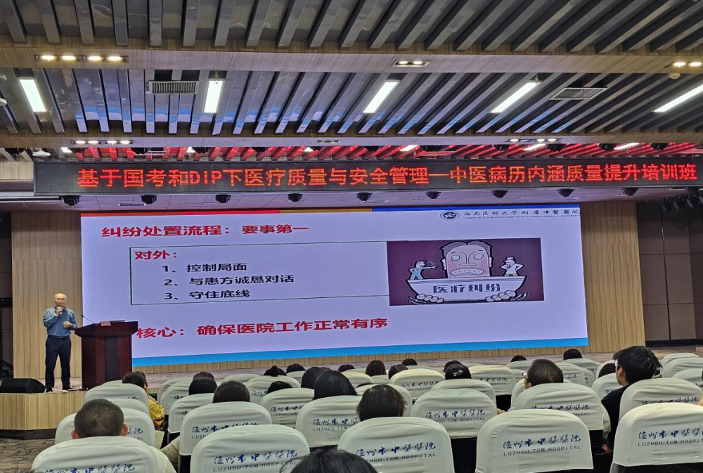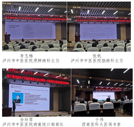 為落實《瀘州市全面提升醫(yī)療質(zhì)量行動計劃(2023-2025年)》中的病歷內(nèi)涵質(zhì)量提升專項行動,進一步提高我市病歷書寫質(zhì)量和中醫(yī)病案首頁填報質(zhì)量,10月24-25日,由瀘州市中醫(yī)病案管理質(zhì)量控制中心主辦、瀘州市中醫(yī)醫(yī)院承辦的繼續(xù)教育項目——中醫(yī)病歷內(nèi)涵質(zhì)量提升培訓(xùn)班在醫(yī)院城南院區(qū)舉行。出席會議并致辭的領(lǐng)導(dǎo)有瀘州市疾病預(yù)防控制局局長、瀘州市衛(wèi)生健康委員會副主任趙秋;瀘州市中醫(yī)醫(yī)院黨委委員、副院長羅彥;瀘州市醫(yī)療質(zhì)控辦科長涂大英。授課老師有中國中醫(yī)科學(xué)院中醫(yī)藥數(shù)據(jù)中心副主任趙玉鳳教授、北京大學(xué)人民醫(yī)院病案統(tǒng)計室主任黃鋒主任教授、華西醫(yī)院病案科莫春梅科長、成都大學(xué)附屬醫(yī)院原信息質(zhì)控部主任楊建南教授等績效考核和病案管理專家。全市公立醫(yī)院、基層醫(yī)療衛(wèi)生機構(gòu)及民營醫(yī)療機構(gòu)病案、醫(yī)務(wù)、臨床等相關(guān)專業(yè)人員,近400人參加了此次培訓(xùn)。業(yè)務(wù)院長羅彥、市醫(yī)療質(zhì)控辦科長涂大英、市中醫(yī)病案質(zhì)控中心業(yè)務(wù)主任孫玲琴、醫(yī)務(wù)部部長邱厚兵以及各區(qū)縣中醫(yī)病案質(zhì)控分中心主任在分會場組織召開了2024年分中心工作匯報交流會。