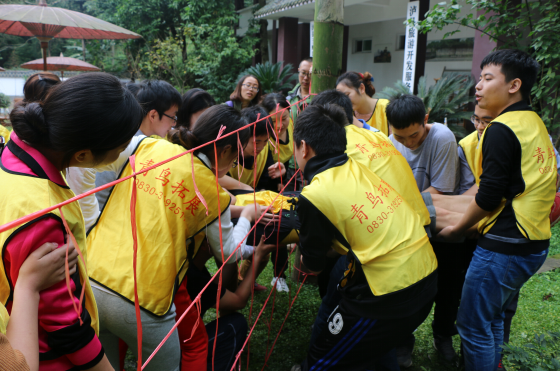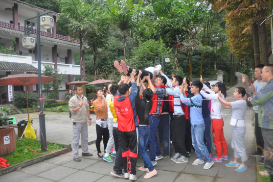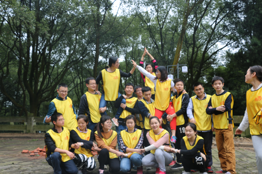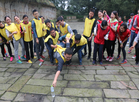 參加人員被分為紅隊和黃隊兩支團隊,通過集體討論,確定了各自的隊名、隊長和口號。活動中,大家相互鼓勵、相互幫助、團結(jié)一心、共同完成了破冰、群龍取水、穿越電網(wǎng)、信任背摔、 挑戰(zhàn)越障等一系列拓展項目,體現(xiàn)了濃厚的集體歸屬感和團隊意識。每輪項目結(jié)束后,大家都會在一起相互商討、爭相發(fā)言,分享親身體驗的過程和成功的喜悅,尤其是學會了如何去溝通,如何去克服心理障礙,如何突破自我去釋放正能量戰(zhàn)勝困難。